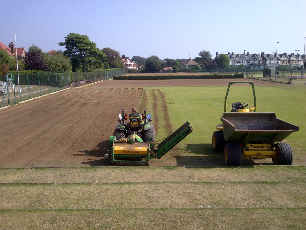 On courts 10, 11 & 12 we graded them in 4 directions, applied 5T of loam dressing and matted it in. They were seeded with Bar Extreme at 25g per sq/m. and fed with Everris Pre-Seeder at a rate of 40g per sq/m.